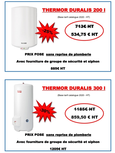 Afin de répondre aux besoins clients en remplacement de ballon d'eau chaude, nous vous proposons notre meilleur offre du moment sur la gamme de ballon d'eau chaude THERMOR DURALIS !!